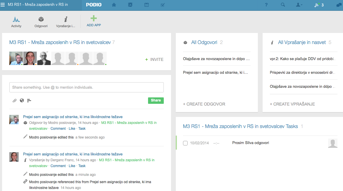Kako deluje ORODJE za komunikacijo med deležniki MREŽE MODRO POSLOVANJE (stranka, računovodski servis, svetovalci) - PODIO?